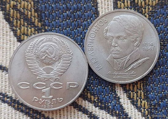 "СССР 1 рубль 1989 года "Лермонтов, Михаил Юрьевич 1814-1841 гг.", UNC.