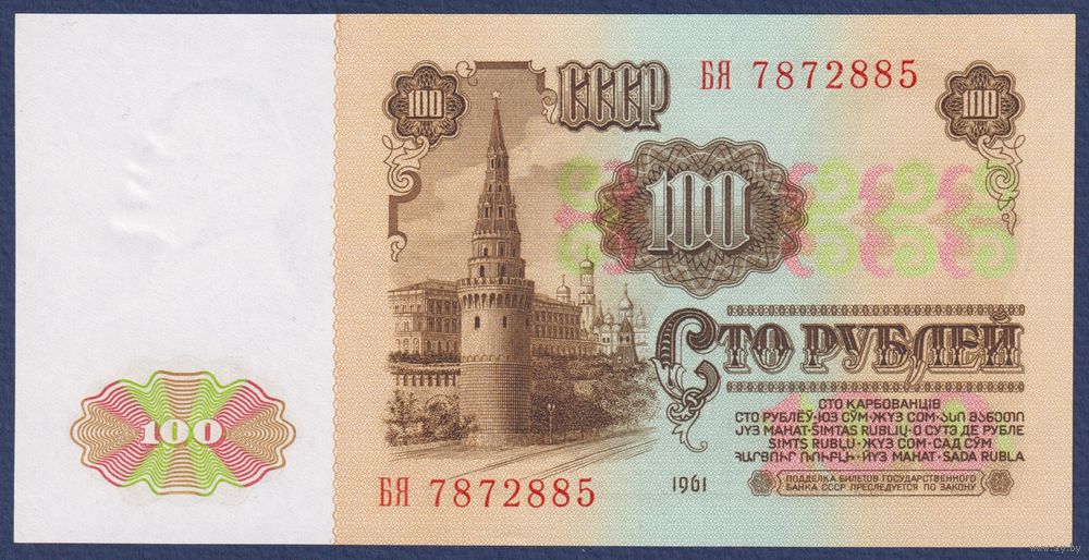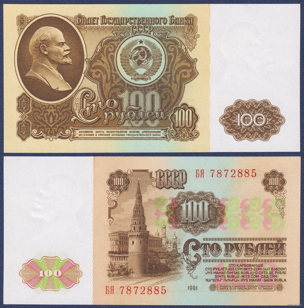 СССР, 100 рублей 1961 г, P-236 (серия БЯ), UNC