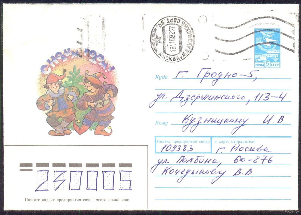 СССР 13.04 88 С Новым годом Скоморохи /прошедший почту/