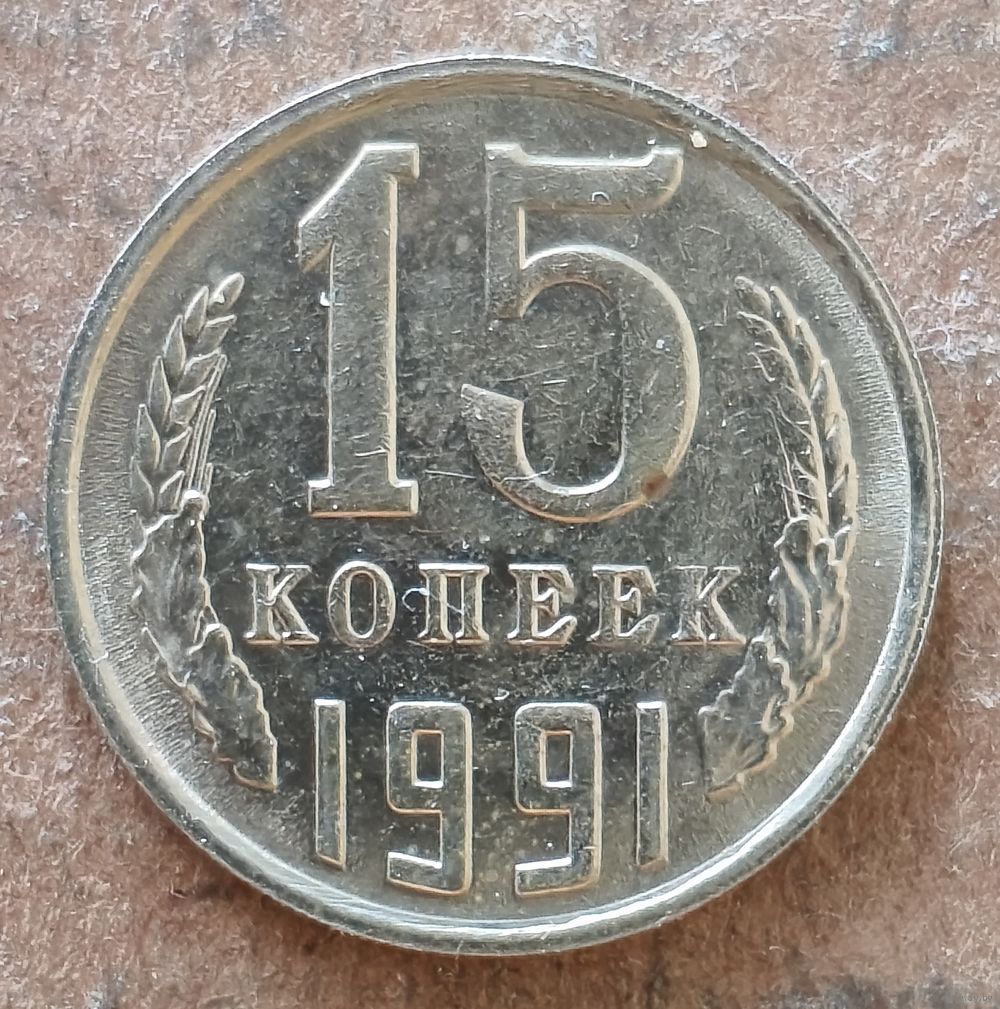 СССР 15 копеек 1991 г., Y# 131, отметка "М"