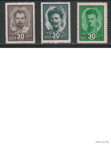 СССР-1944, (Заг.836-838), ** ( 1 м - *) , Герои гражданской войны (полная серия)