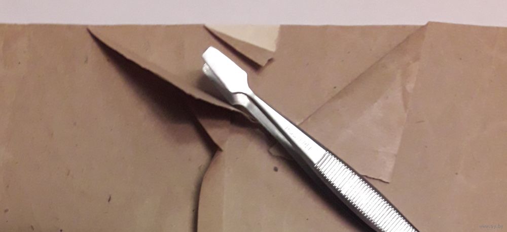 Был наклеен на какое-то почтовое отправление и прошел почту. Срезан вместе с частью упаковки(см.фото).