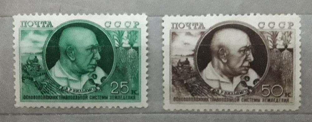 На марке меньшего номинала след от наклейки и пометка карандашом.