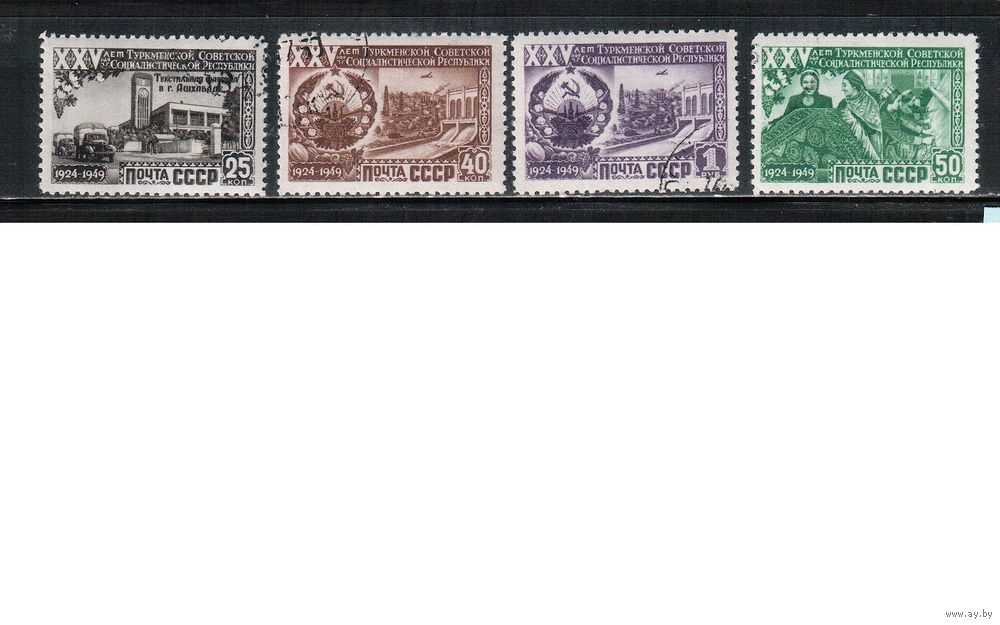 СССР-1950, (Заг.1406(1)-1409(1)) гаш., растр КВ,Туркменская ССР (полная серия)