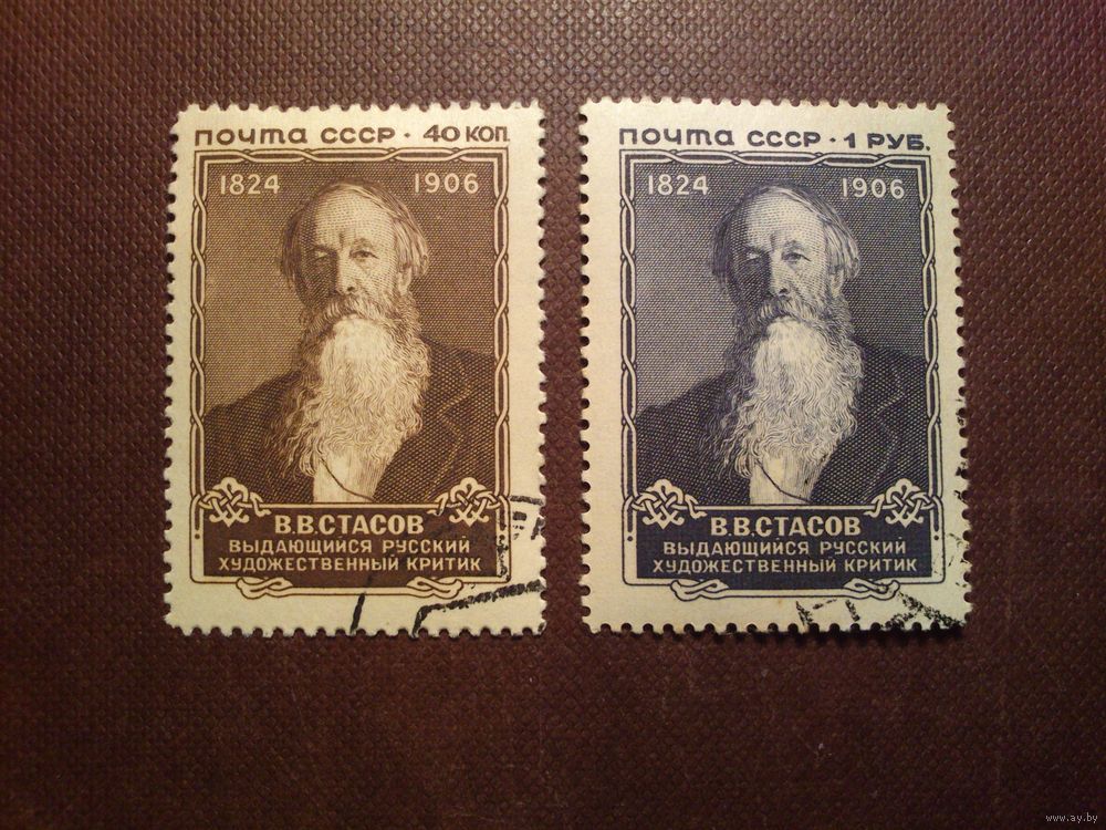 СССР 1957 г.В,В.Стасов - русский художественный и музыкальный критик, историк искусств,библиограф, архивист.Гашеная с клеем ,наклейка.