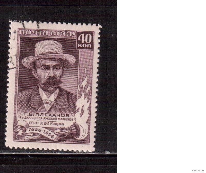 СССР-1957, (Заг.1918) гаш.(с клеем), Г.Плеханов