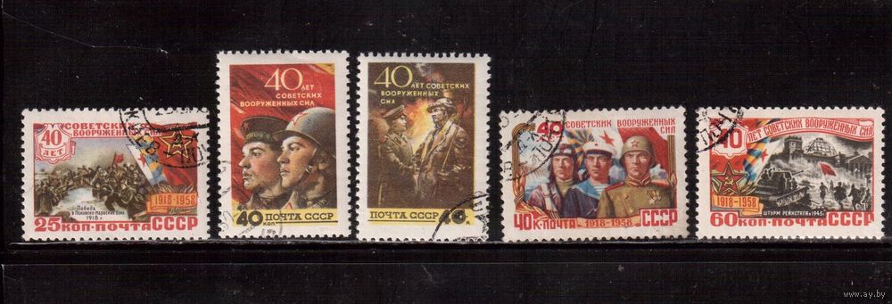 СССР-1958, (Заг.2029-2033), гаш.(с клеем), 40-лет Вооруженным силам(1_