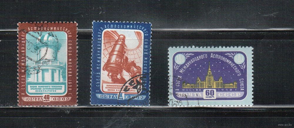 СССР-1958, (Заг.2105-2107) гаш.(с клеем), Астрономический союз(2)
