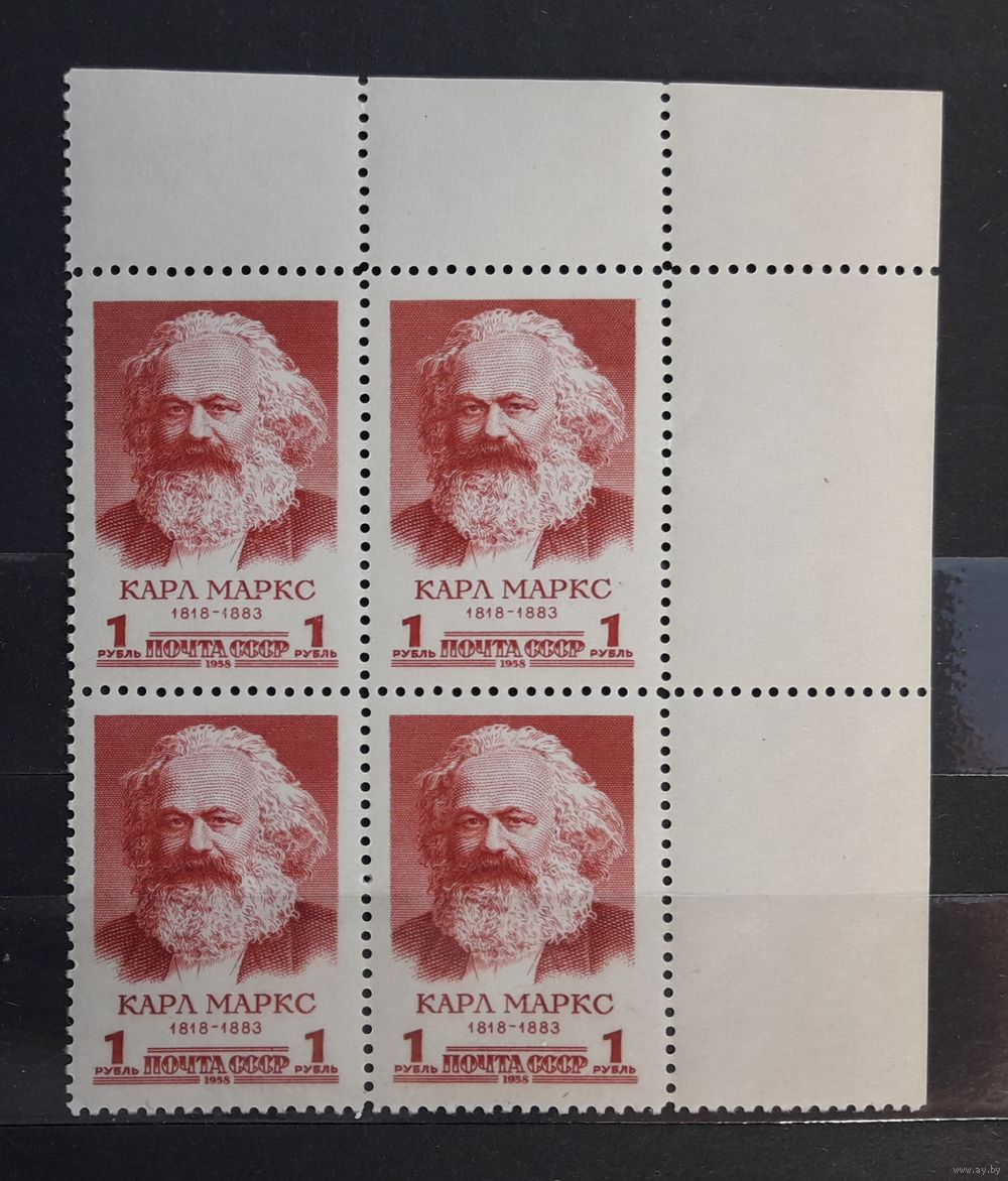 СССР 1958г. Марка 1руб. в квартблоке из серии "К.Маркс". **
