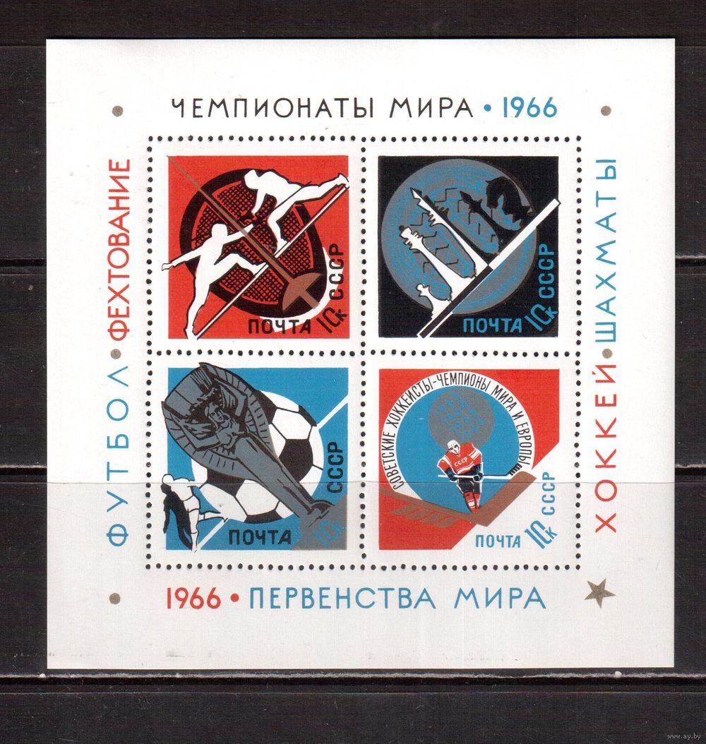 СССР-1966, (Заг.Бл.46), ** , Спорт, Футбол, Хоккей, Шахматы