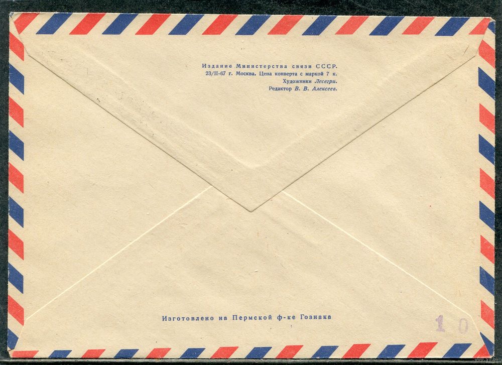СССР 1967. ХМК. Конверт с СГ. Авиа. 10 лет первого спутника земли. Гашение Калуга 1967