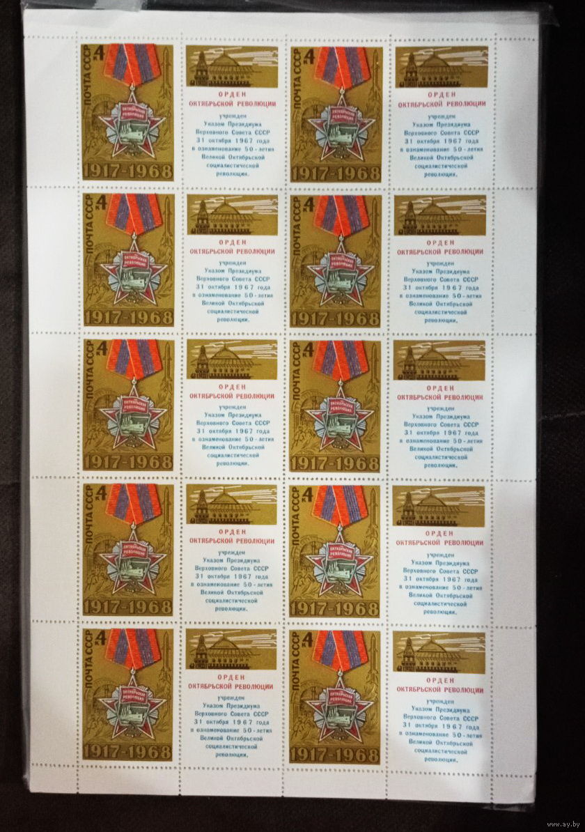 СССР. 1968. 50 лет ордену Октябрьской революции ЛИСТ MNH
