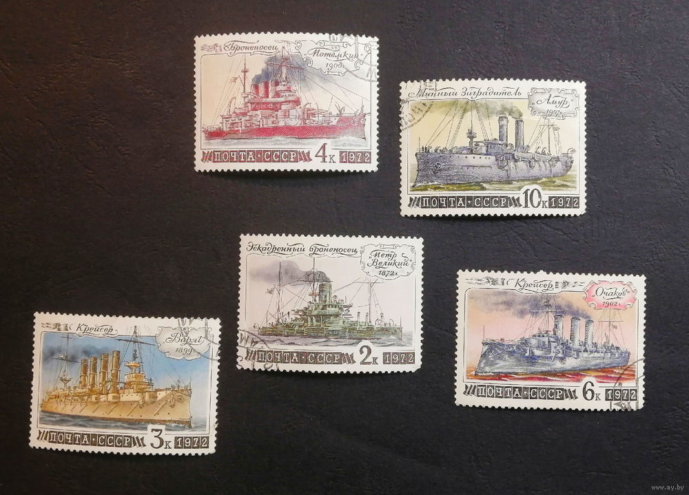 СССР 1972 г. История Российского Военно-Морского Флота. Корабли. ВМФ, полная серия из 5 марок #0140-Т1P28