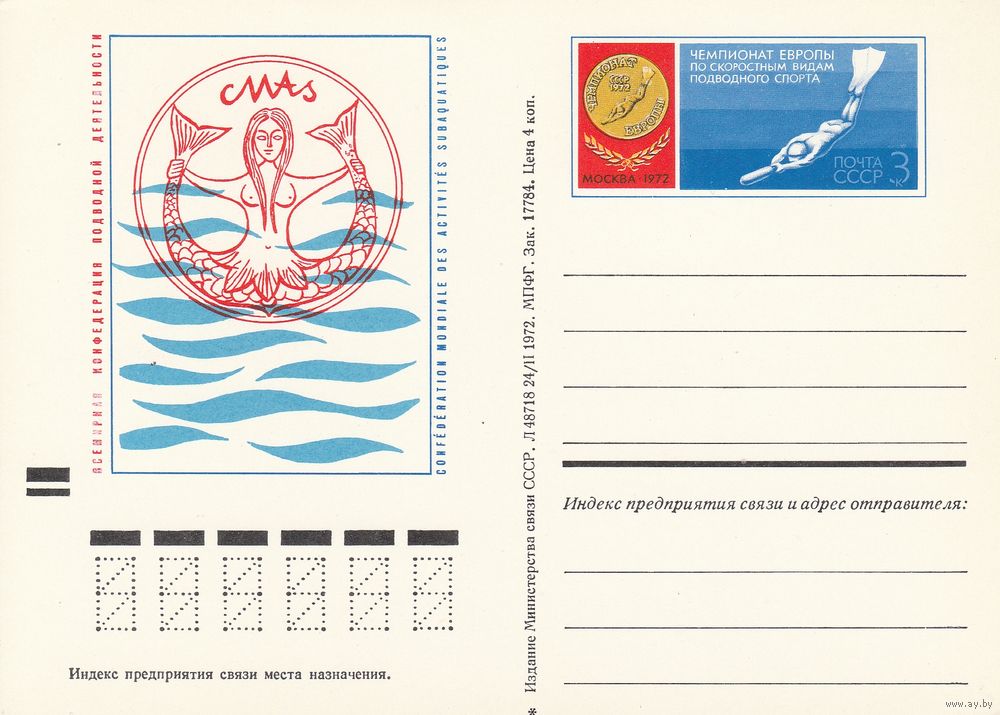 СССР 1972 ПК с ОМ II чемпионат Европы по скоростным видам подводного плавания. Москва (к3)
