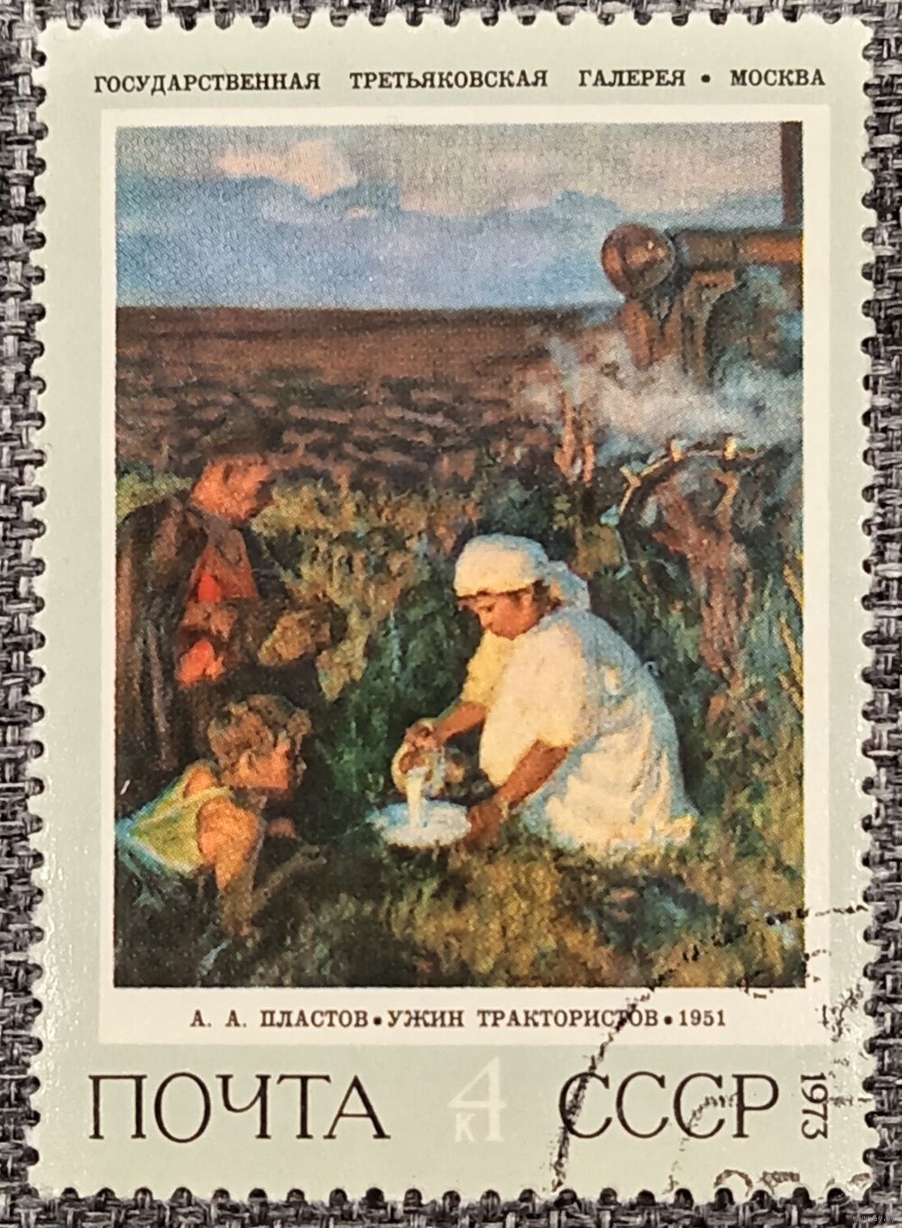 СССР 1973. Живопись. А. А. Пластов. Ужин тракториста. Марка из серии