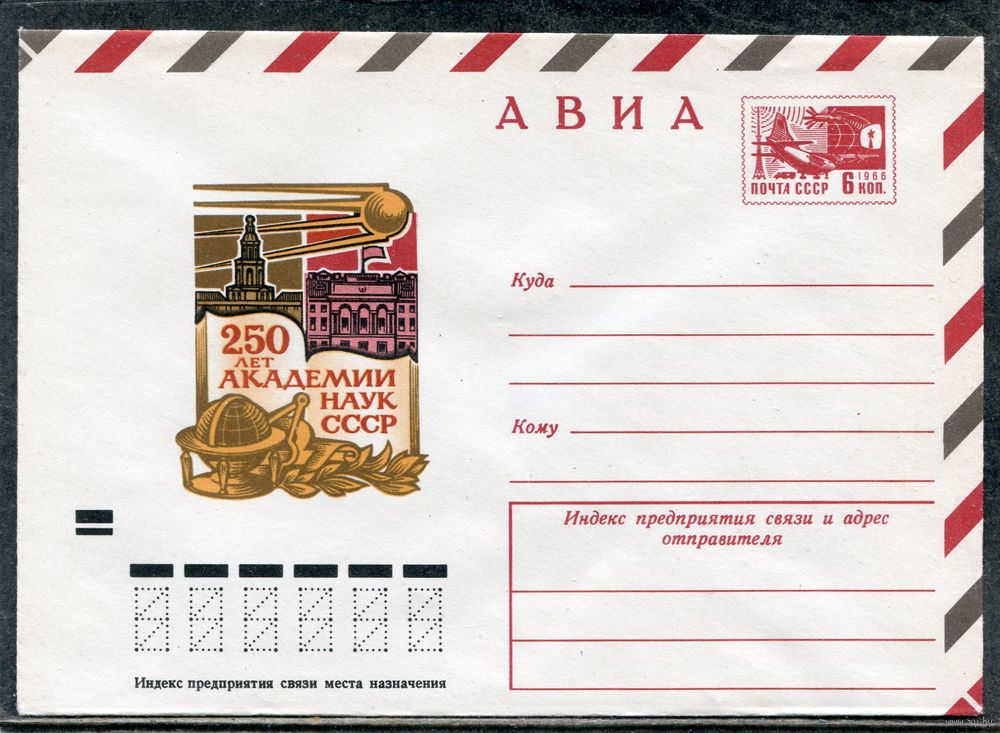 СССР 1974. ХМК. Конверт. Авиа. 250 лет Академии наук СССР