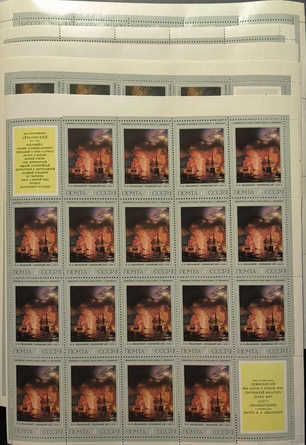 СССР. 1974. И.Айвазовский. Листы с купонами. Полная серия (Соловьев № 4330-35).