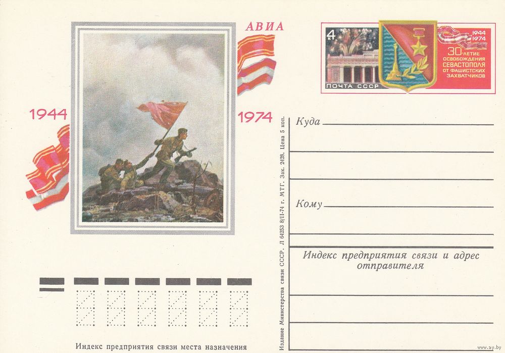 СССР 1974 ПК с ОМ 30-летие освобождения Севастополя от немецко-фашистских захватчиков (к3)