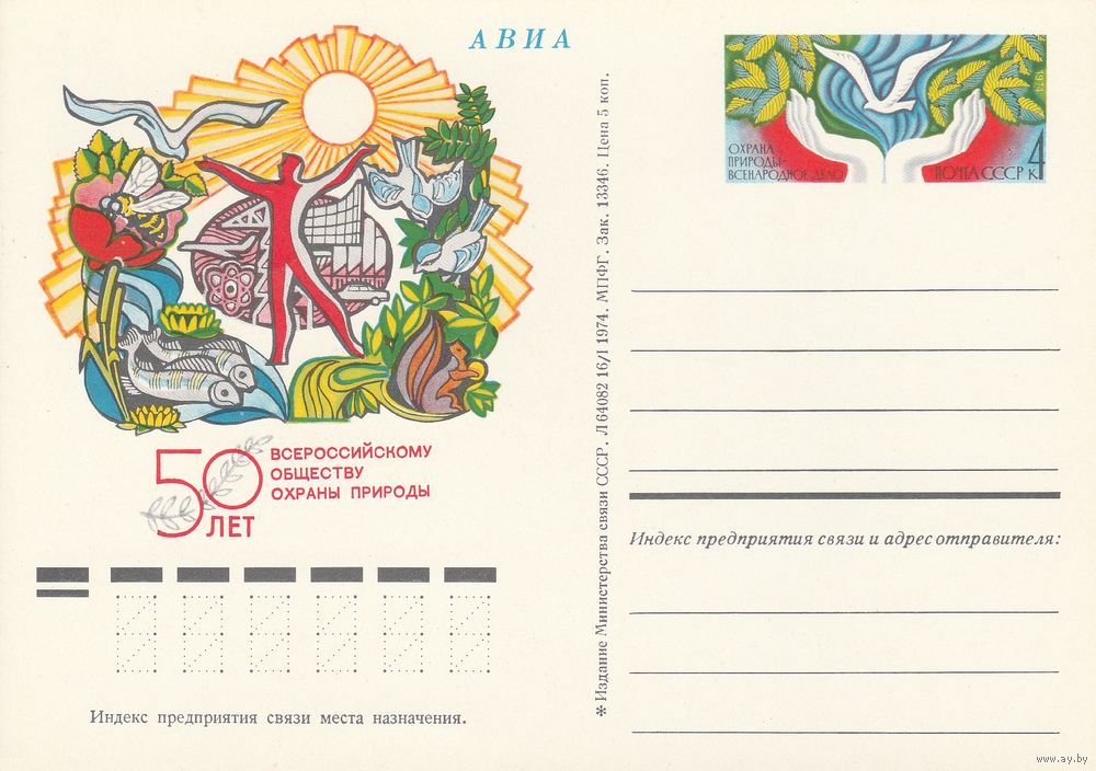 СССР 1974 ПК с ОМ 50-летие Всероссийского общества охраны природы (к3)
