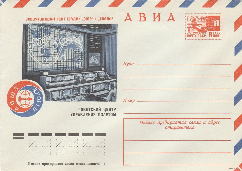 СССР 1975 МХК Экспериментальный полет кораблей Союз и Аполлон Советский центр управления полетом (к2)