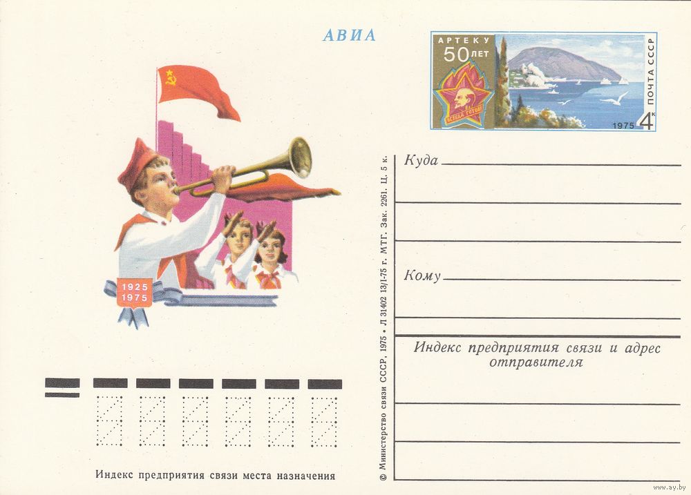 СССР 1975 ПК с ОМ 50-летие Всесоюзного пионерского лагеря Артек (к3)