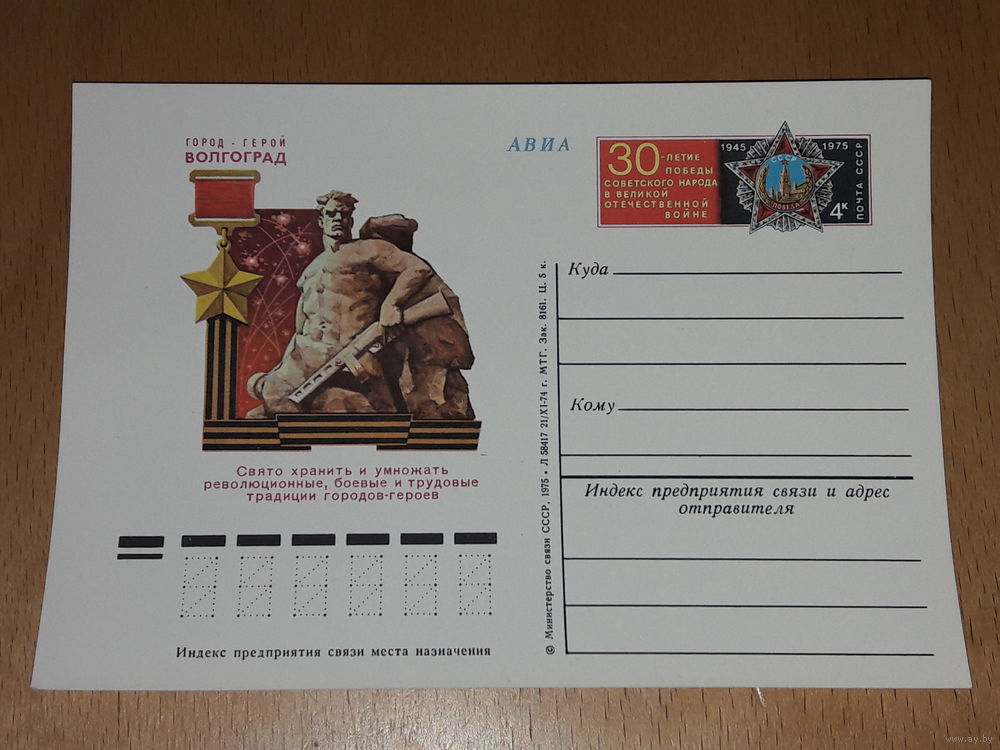 СССР 1975 ПК с ОМ Город-герой Волгоград