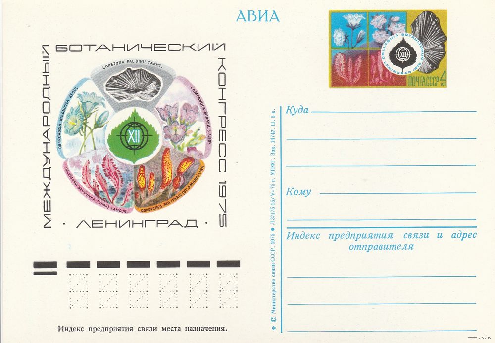 СССР 1975 ПК с ОМ XII Международный ботанический конгресс. Ленинград (к3)