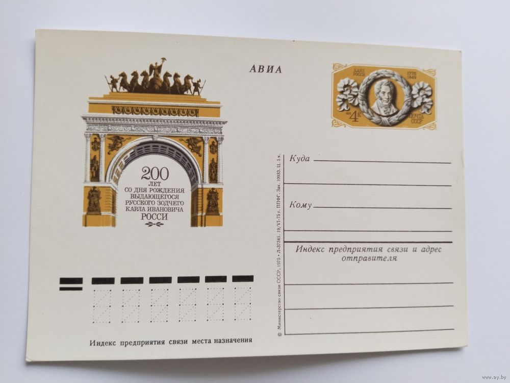 СССР 1975 почт .карточка 200 лет со дня рожд. Росси