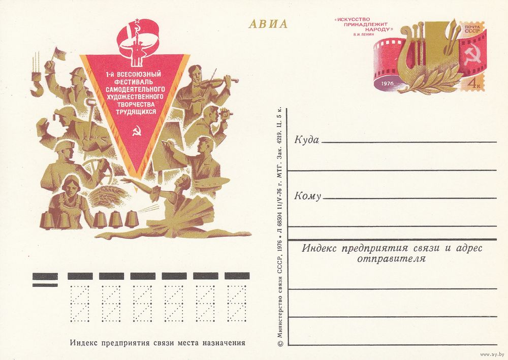 СССР 1976 ПК с ОМ Первый всесоюзный фестиваль самодеятельного художественного творчества (к3)