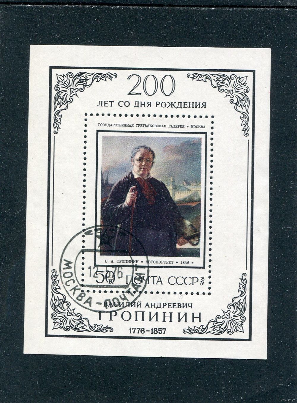 СССР 1976.. В.А. Тропинин, художник. Автопортрет. Блок