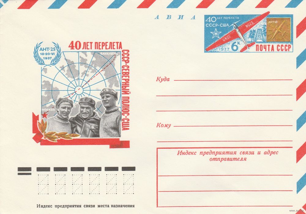 СССР 1977 МХК с ОМ 40 лет первого перелета СССР-СП-США (к3)