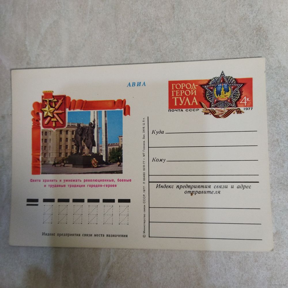 СССР 1977 ПК с ОМ Праздник Победы в Великой отечественной войне. Город-герой Тула