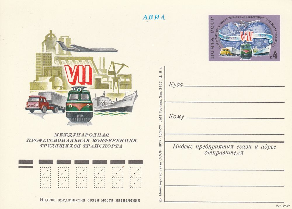 СССР 1977 ПК с ОМ со СГ VII Международная профессиональная конференция трудящихся транспорта (к3)