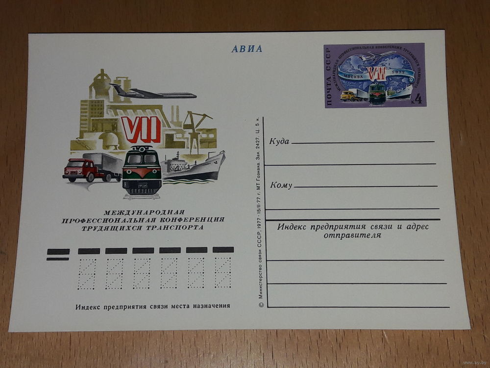 СССР 1977 ПК с ОМ VII Международная профессиональная конференция трудящихся транспорта.