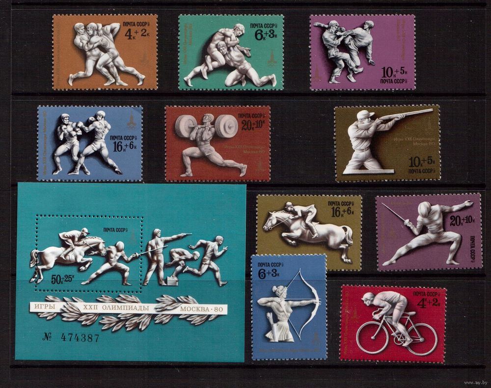 СССР-1977 (Заг.4652-4656,4692-4696,Бл.124) ** , Спорт, ОИ-1980, (полная серия)