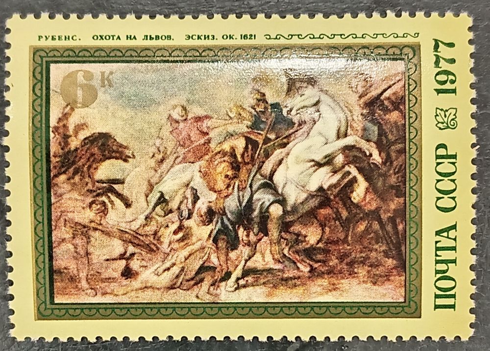 СССР 1977. Живопись. Рубенс. Охота на львов. Марка из серии