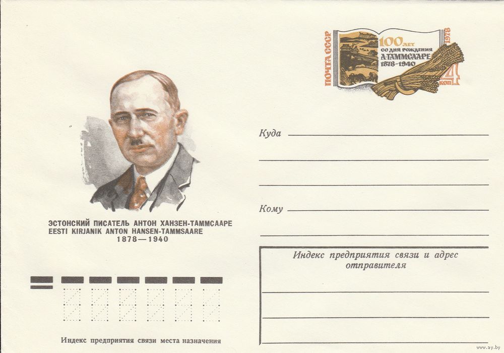 СССР 1978 МХК с ОМ 100 лет со дня рождения А. Таммсааре (к3)