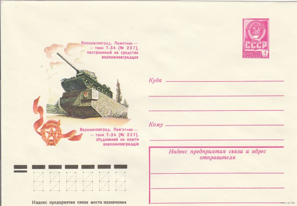СССР 1978 МХК Ворошиловград Памятник Т-34 (к3)