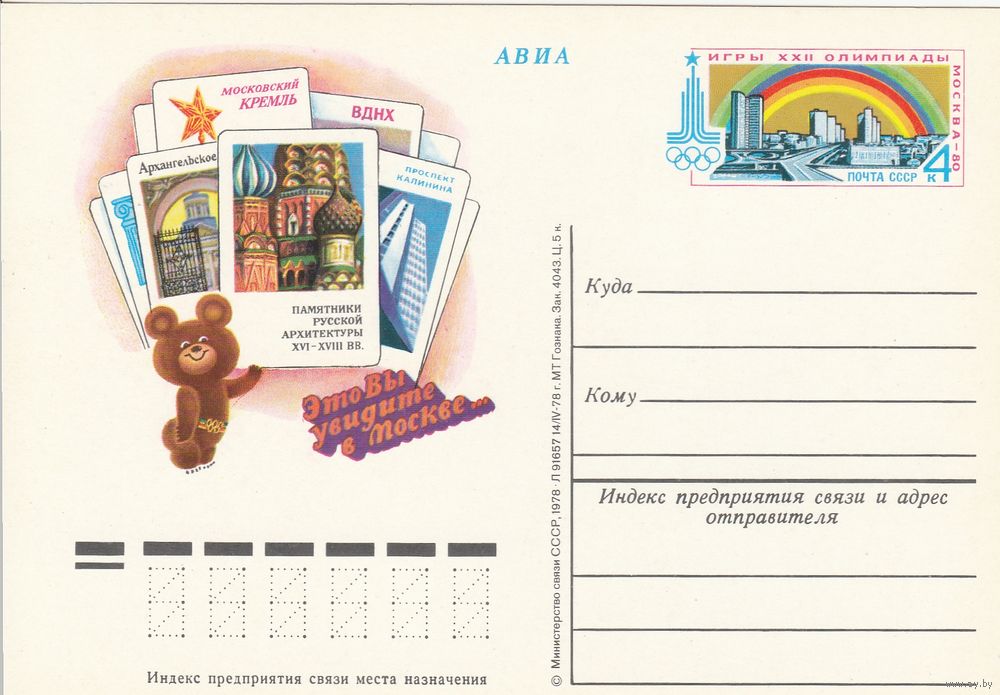 СССР 1978 ПК с ОМ Игры XXII Олимпиады, Москва-80. Архитектура Москвы (к3)