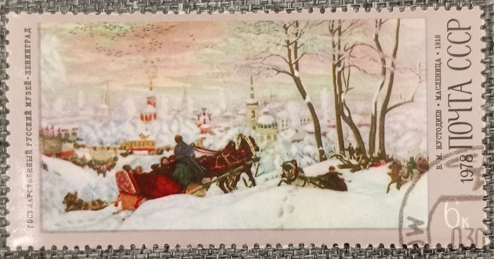 СССР 1978. Живопись. В. М. Кустодиев. Масленица. Марка из серии