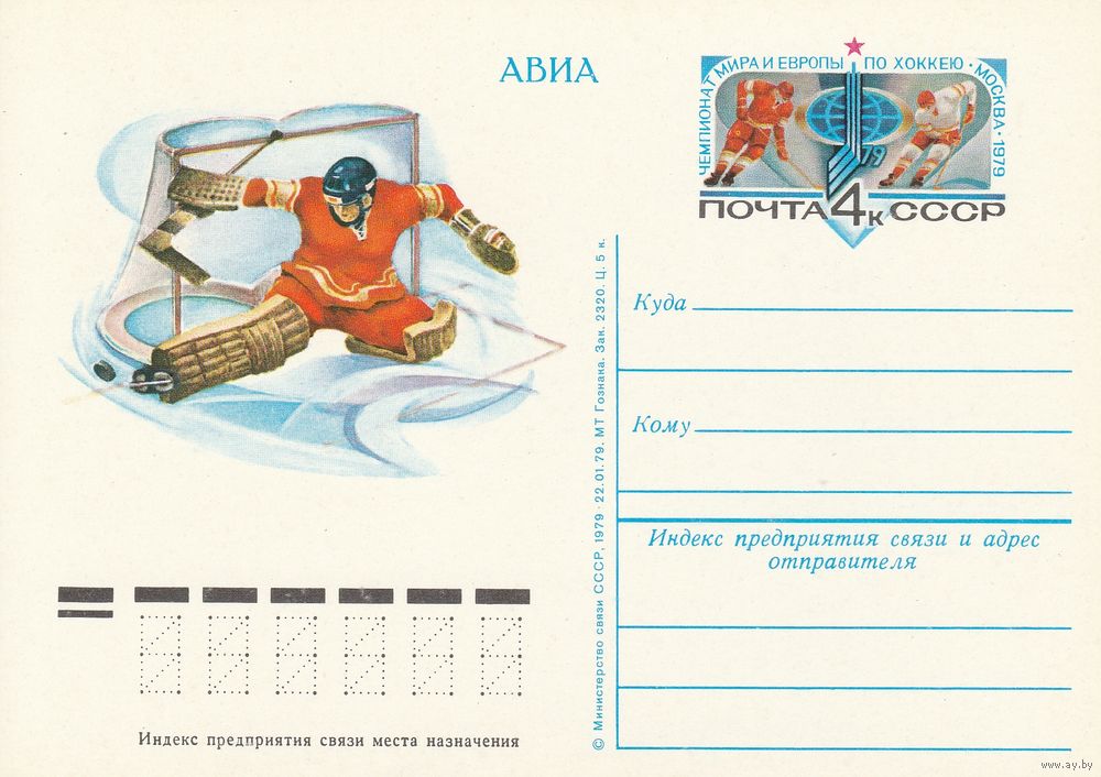 СССР 1979 ПК с ОМ Чемпионат мира и Европы по хоккею. Москва (к3)
