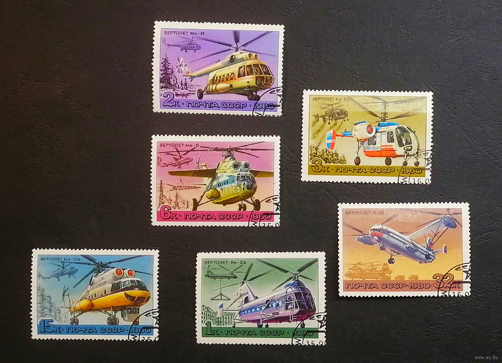 СССР 1980 г. Вертолеты. История отечественной авиации, полная серия из 6 марок #0136-Т1P27
