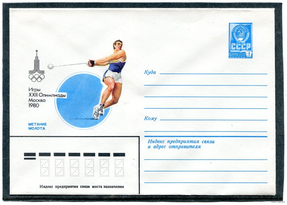 СССР 1980. ХМК. Конверт. Олимпиада-80. Метание молота