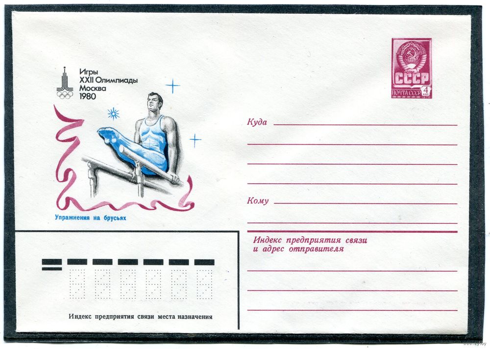СССР 1980. ХМК. Конверт. Олимпиада-80. Упражнения на брусьях