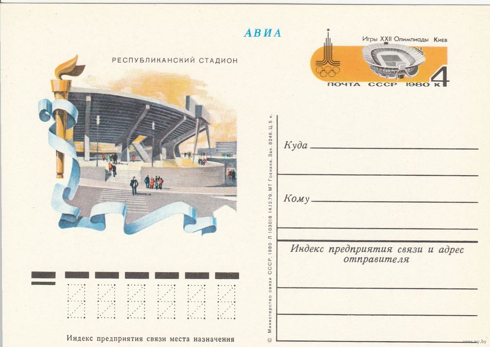 СССР 1980 ПК с ОМ Игры XXII Олимпиады, Москва. Олимпийские объекты: Центральный республиканский стадион в Киеве (к3)