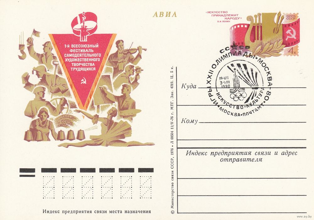 СССР 1980 ПК с ОМ со СГ Игры XXII Олимпиады Москва-80 Искусство Культура (к3)