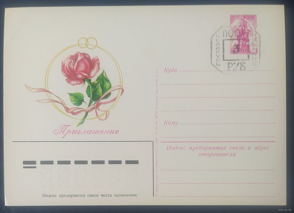 СССР 1980 почтовая карточка, приглашение , провизорий Минск.
