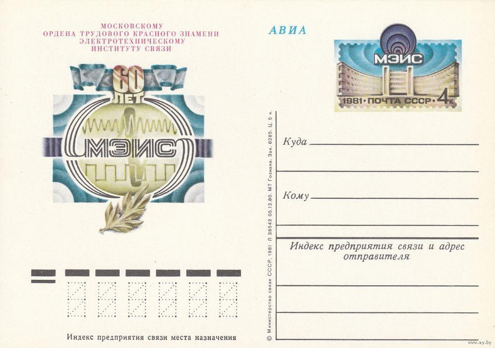 СССР 1981 ПК с ОМ 60-летие Московского электротехнического института связи (МЭИС) (к3)