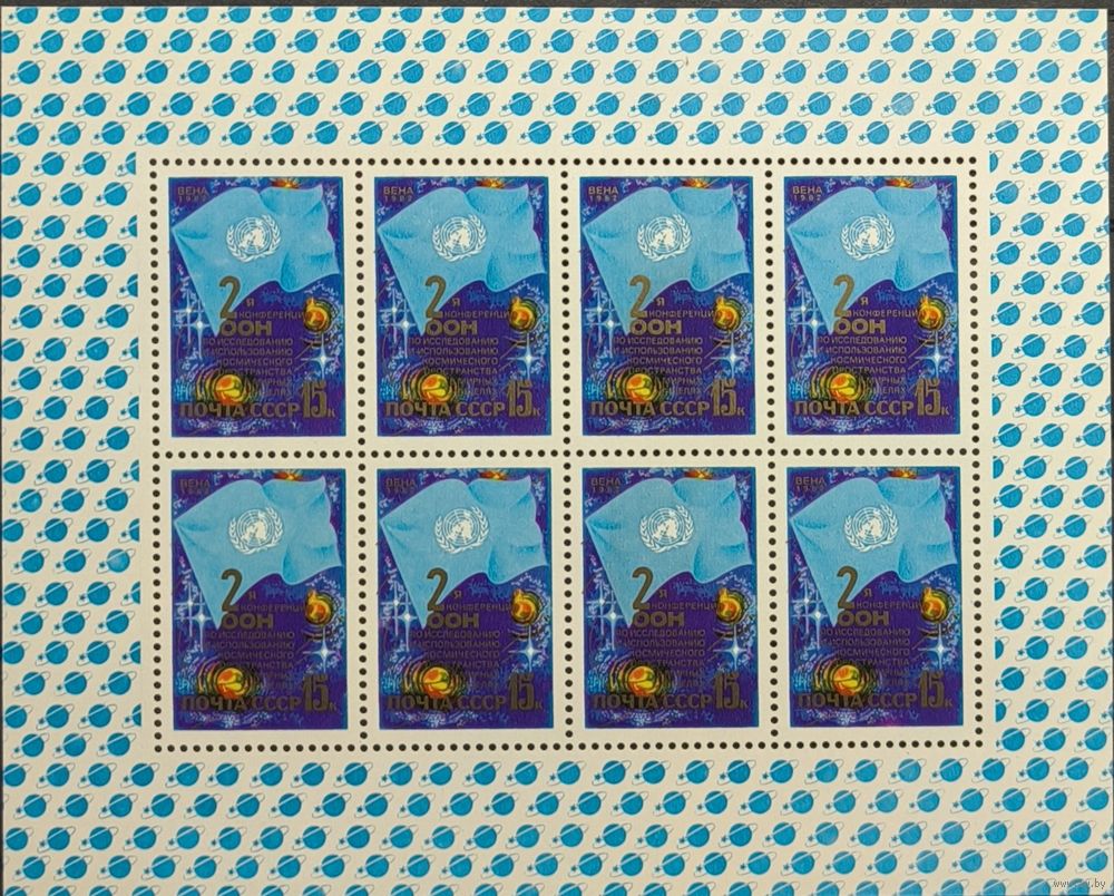 СССР. 1982. Конференция ООН по космосу. Малый лист (4х2) (Соловьев № 5307).