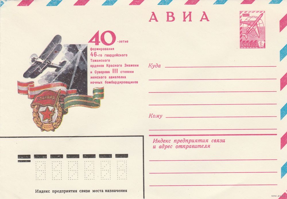 СССР 1982 МХК 40-летие формирование женского полка ночных бомбардировщиков (к3)